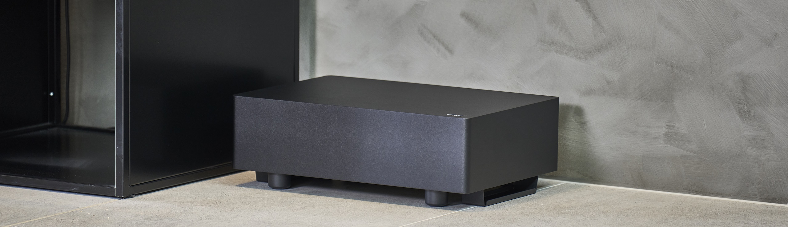 The subwoofer is designed for quick installation and is seamlessly compatible with Omni speakers. Housed in a sealed enclosure, this subwoofer operates wirelessly and adds powerful bass to enhance the depth of the sound produced by the speakers, elevating the overall music experience. Its thoughtful design ensures that the subwoofer integrates effortlessly into the audio setup, contributing to a rich and immersive sound experience.